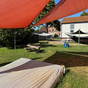 Derzeit befindet sich unsere Kita im Untergeschoss des Dorfgemeinschaftshauses, da unser zukünftiges Kita-Gebäude saniert wird und zusätzlich ein moderner Neubau entsteht. Wir freuen uns, den Kindern in dieser Übergangszeit eine liebevolle und sichere Umgebung zu bieten, die zum Spielen, Lernen und Entdecken einlädt.